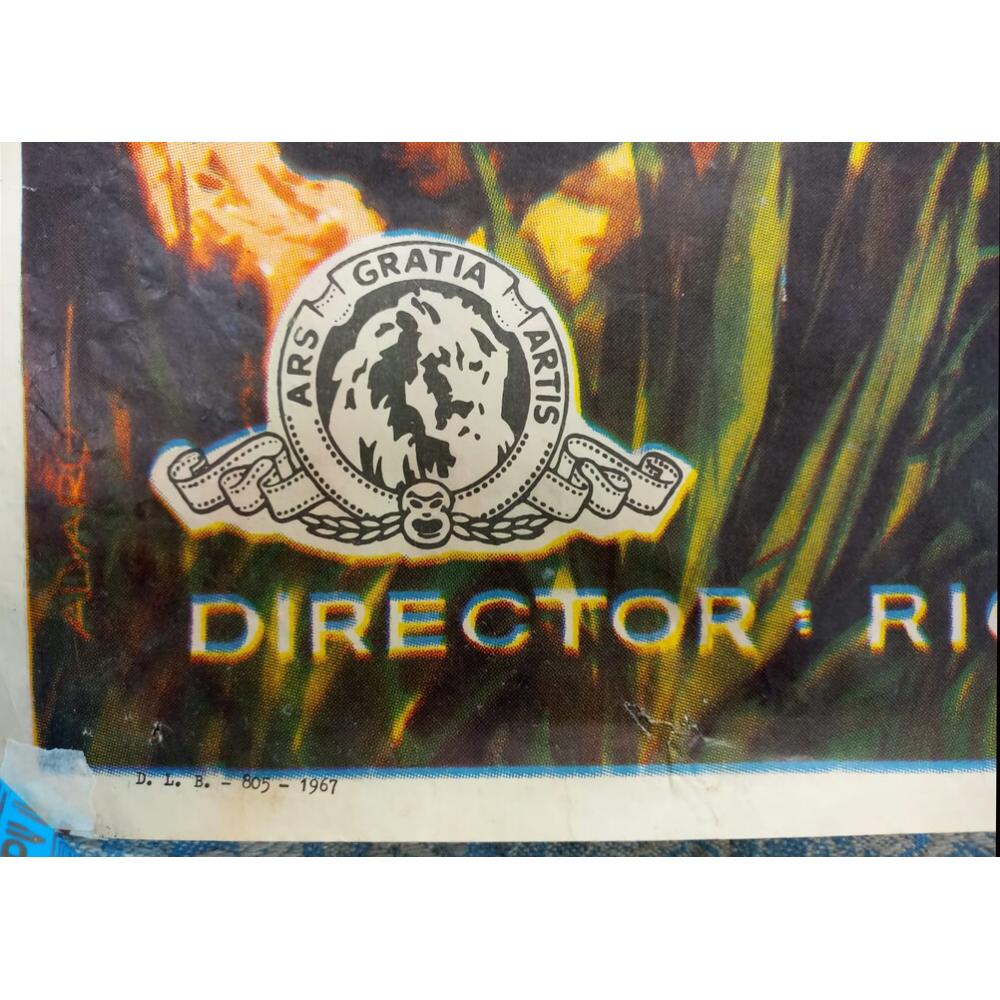 Calidad y Autenticidad MGM Este ejemplar no es una copia moderna. Se trata de un cartel original de reestreno impreso en 1967 (Depósito Legal B-805-1967), conservando el prestigioso sello de la MGM. Su colorido y diseño clásico lo convierten en un elemento decorativo con una personalidad arrolladora, ideal para dar un toque vintage y aventurero a cualquier estancia.