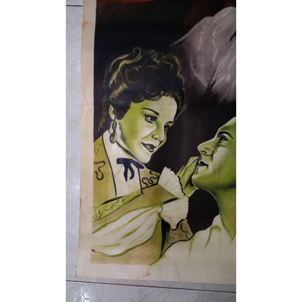 Presencia Imponente y Autenticidad Con unas medidas de 74 x 110 cm, este afiche original de estreno posee una fuerza visual que domina cualquier espacio. No es una reproducción moderna; es un ejemplar genuino de mediados del siglo XX que conserva sus marcas de doblado originales y la pátina del tiempo, señales que garantizan su procedencia y lo convierten en una inversión de coleccionismo real.