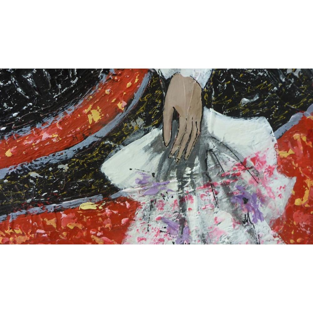 "Cuadro de menina pintado al óleo en estilo moderno, con textura y colores vivos, listo para colgar".