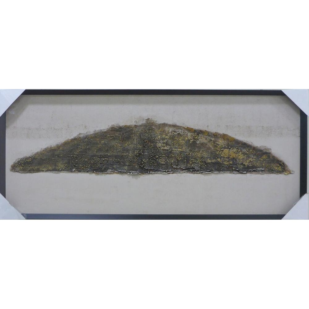 - Material: Textura creada con pastas de relieve y elementos metálicos sobre lienzo, enmarcado en negro para un acabado elegante.