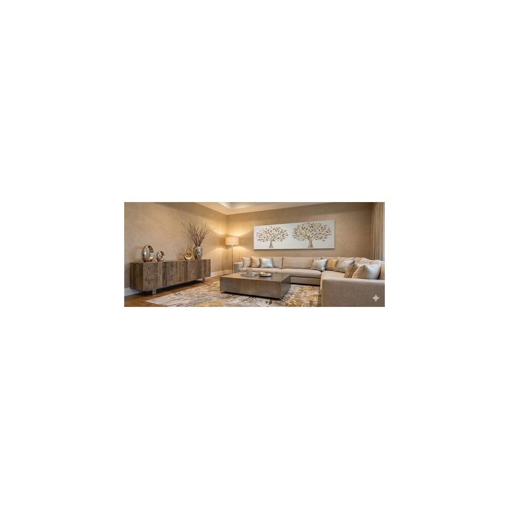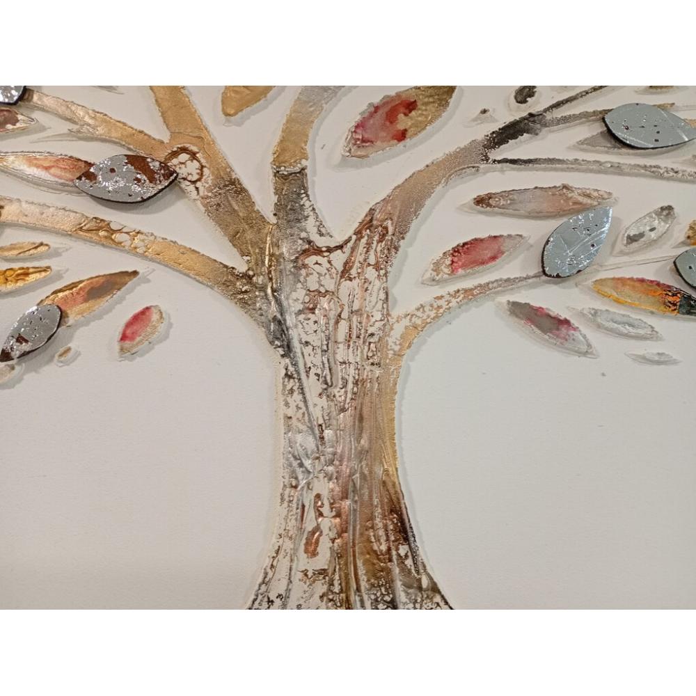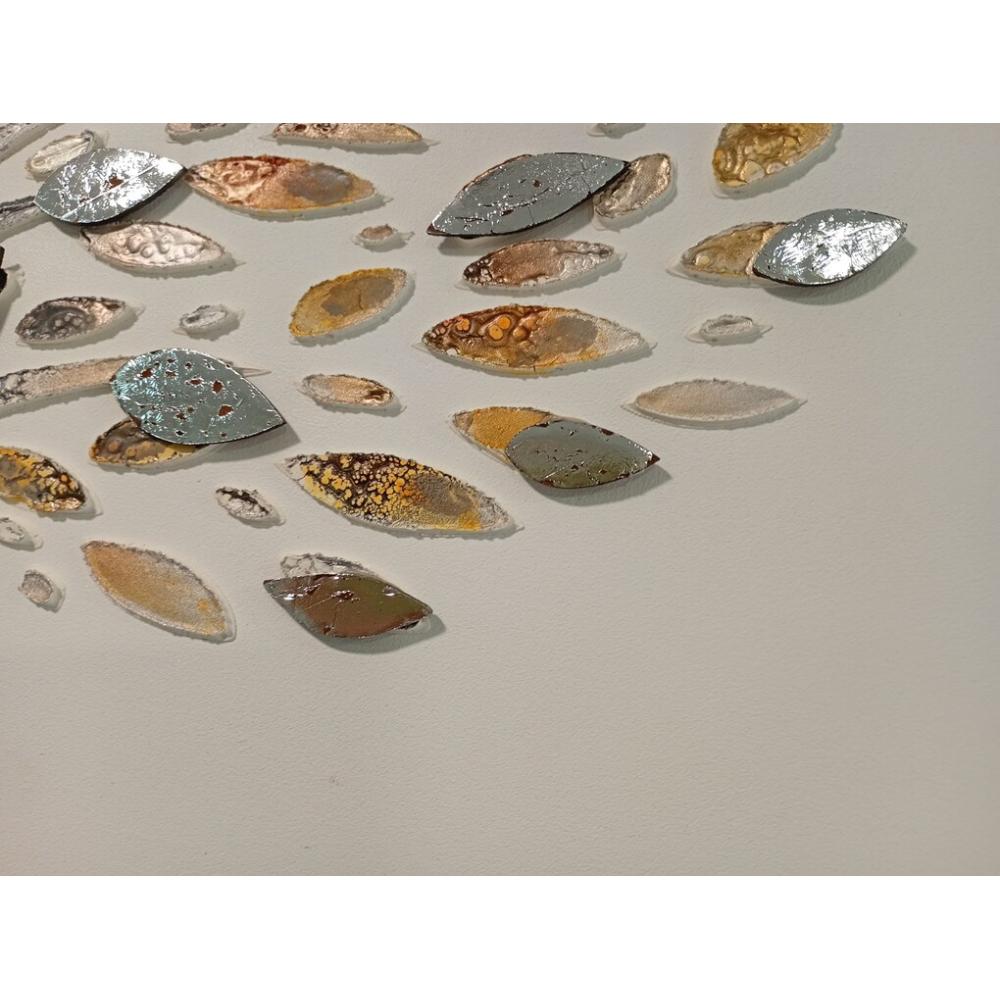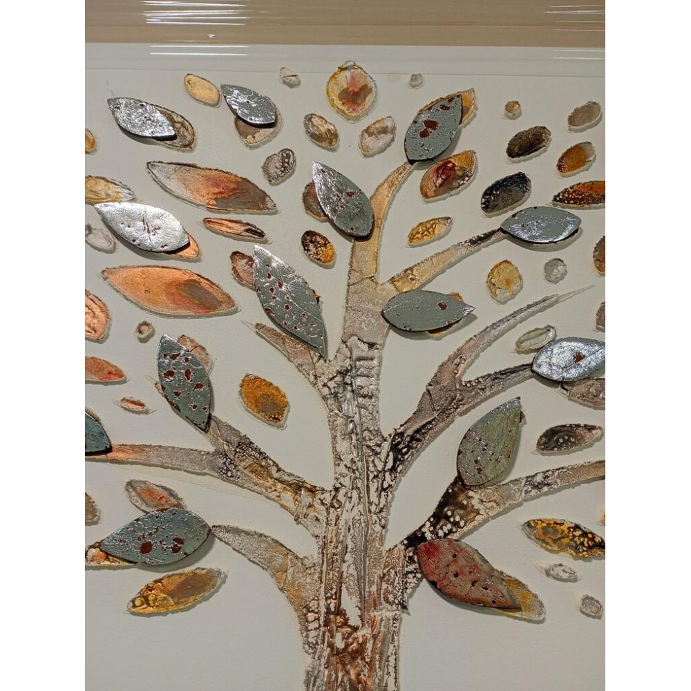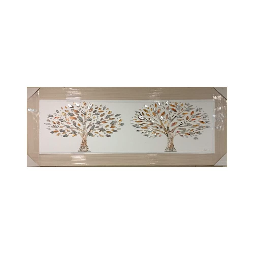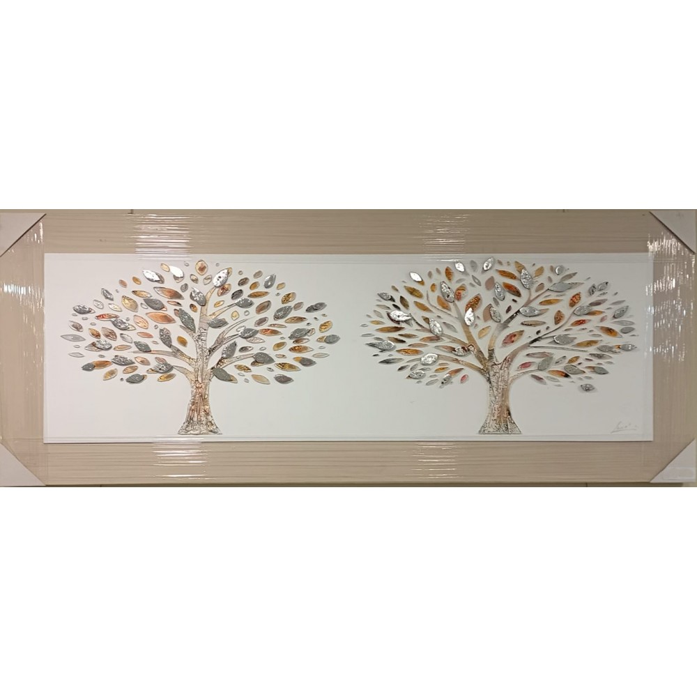 Obra de Arte Enmarcada: Dos Árboles con Hojas en Relieve Metálico, Estilo Contemporáneo