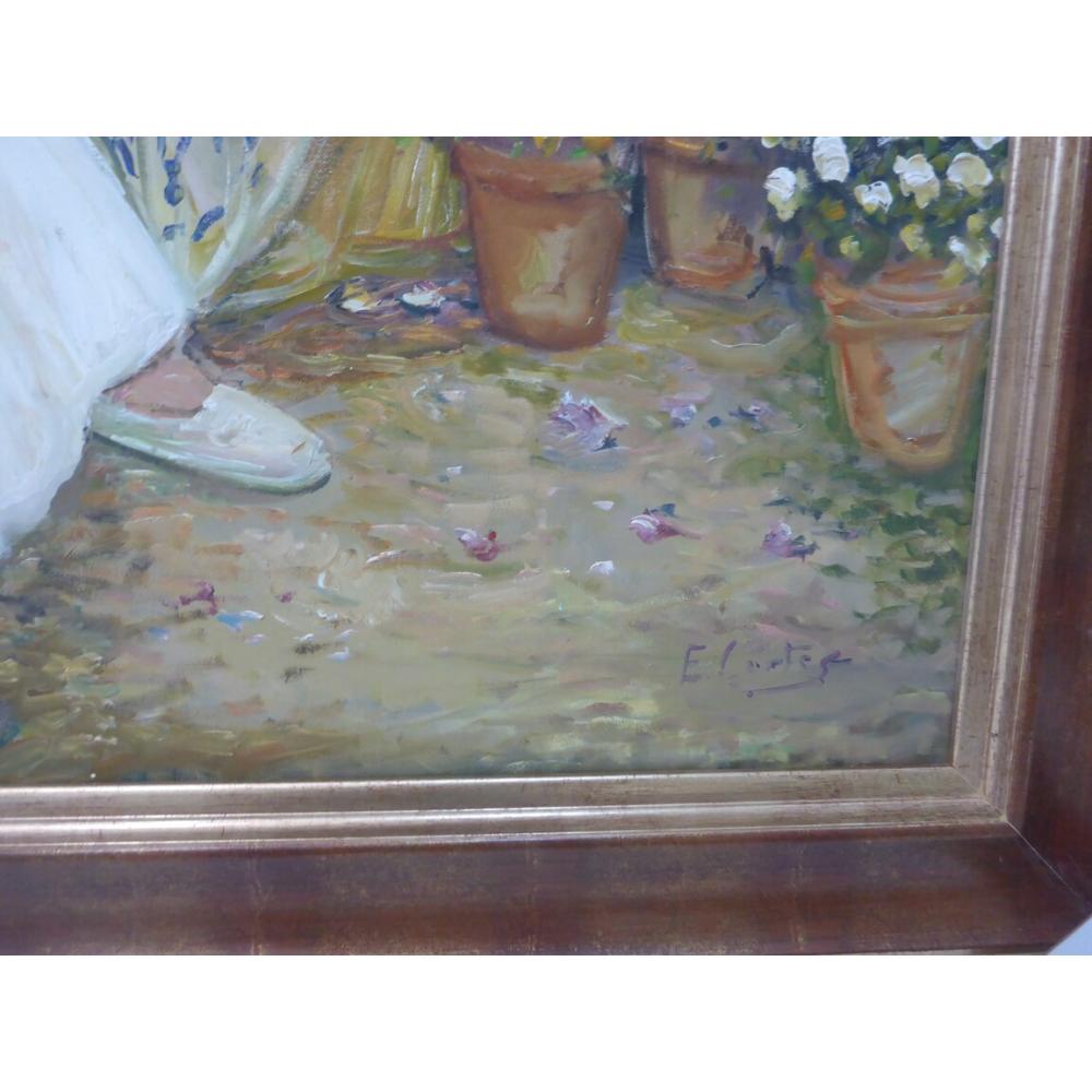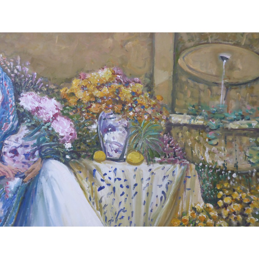 - Temática: La pintura evoca la calma de una tarde en un jardín privado, ideal para coleccionistas que aprecian escenas cotidianas y la belleza de la naturaleza capturada con frescura y espontaneidad.