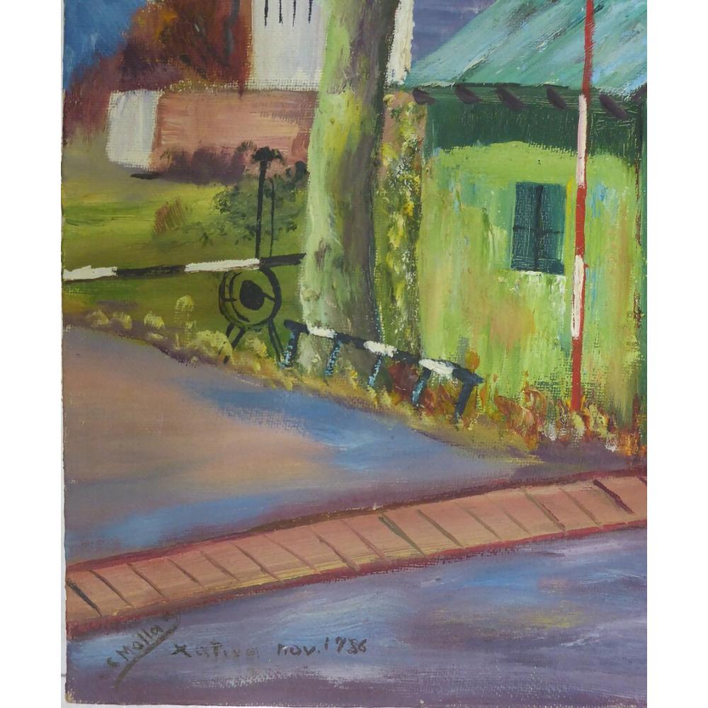 Descripción: Impresionante óleo sobre lienzo de la pintora Xàtivina Carmen Mollà Soriano (41 x 33 cm). En esta obra, la autora eleva un escenario cotidiano