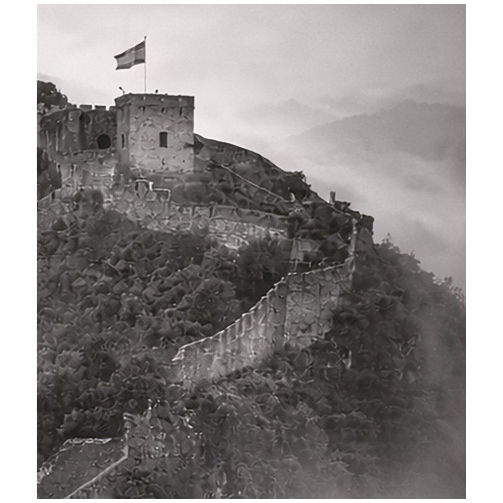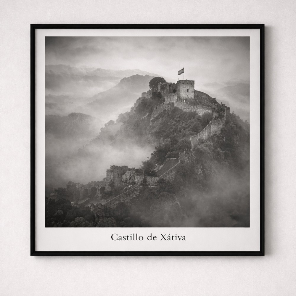 Sumérgete en la atmósfera etérea de esta cautivadora fotografía en blanco y negro, donde la niebla envuelve un edificio de aspecto fortificado con una gran estrella colgante. Esta imagen crea una sensación de misterio y tranquilidad, perfecta para añadir un toque artístico y evocador a cualquier espacio. Ideal para amantes de la fotografía atmosférica, la decoración navideña o los paisajes invernales únicos.