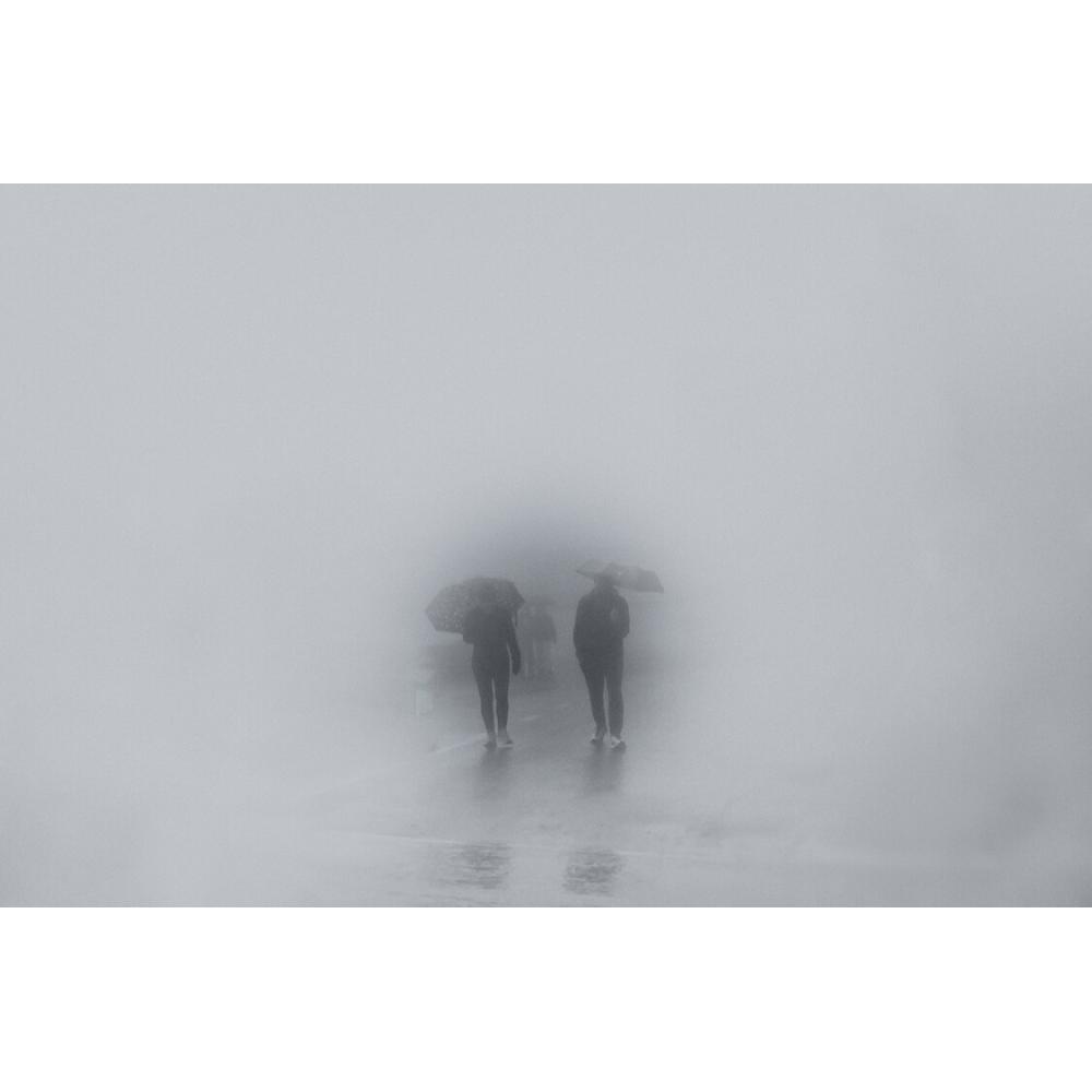- Atemporalidad del Blanco y Negro: El uso exclusivo de la escala de grises resalta las formas y texturas de la niebla y la lluvia, eliminando distracciones de color y asegurando que la pieza combine fácilmente con cualquier paleta de colores existente en la habitación.
