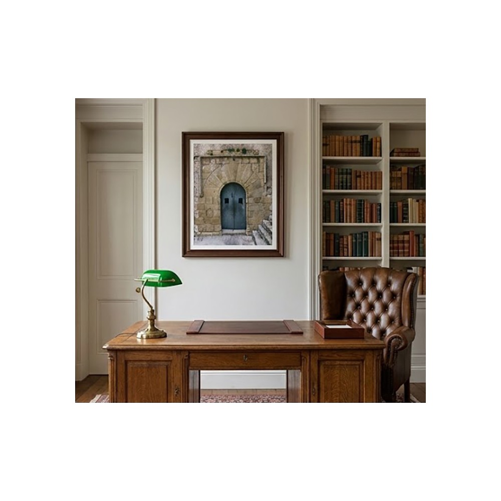 Esta obra captura con un detalle asombroso la entrada a la Capilla del Castillo de Xàtiva, un rincón donde la historia y la arquitectura convergen en una danza de texturas y sombras. El arco de piedra labrada, coronado por una vegetación resiliente, enmarca una puerta metálica que parece custodiar siglos de secretos y devoción. Es una pieza que no solo decora, sino que añade una atmósfera de paz y profundidad histórica a cualquier estancia.