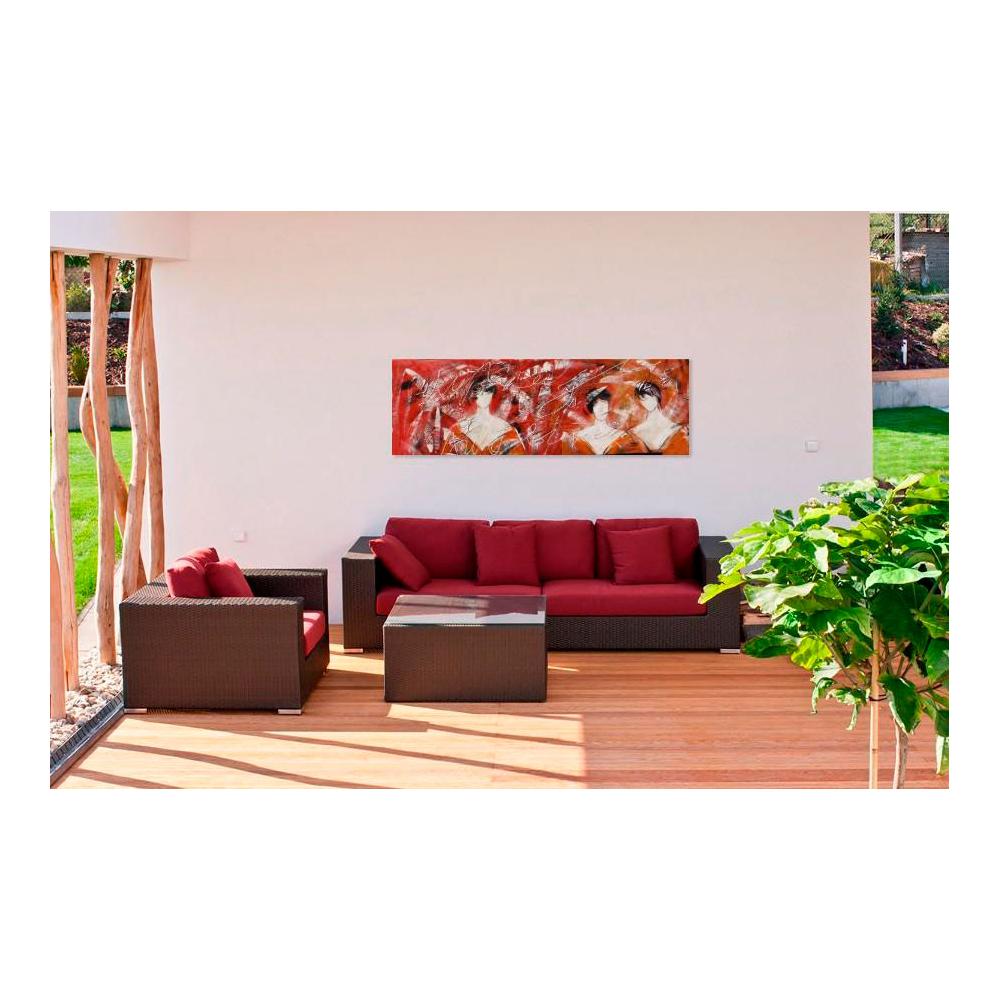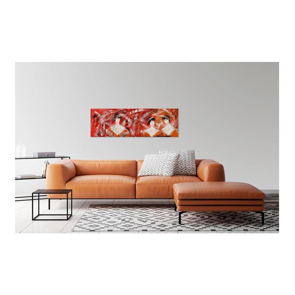 Esta pintura no es solo decoración; es una declaración de estilo. Perfecta para salones, dormitorios modernos u oficinas que buscan un punto focal artístico y contemporáneo. Su paleta de colores intensos y su temática atemporal la convierten en una inversión en arte que no pasará desapercibida.