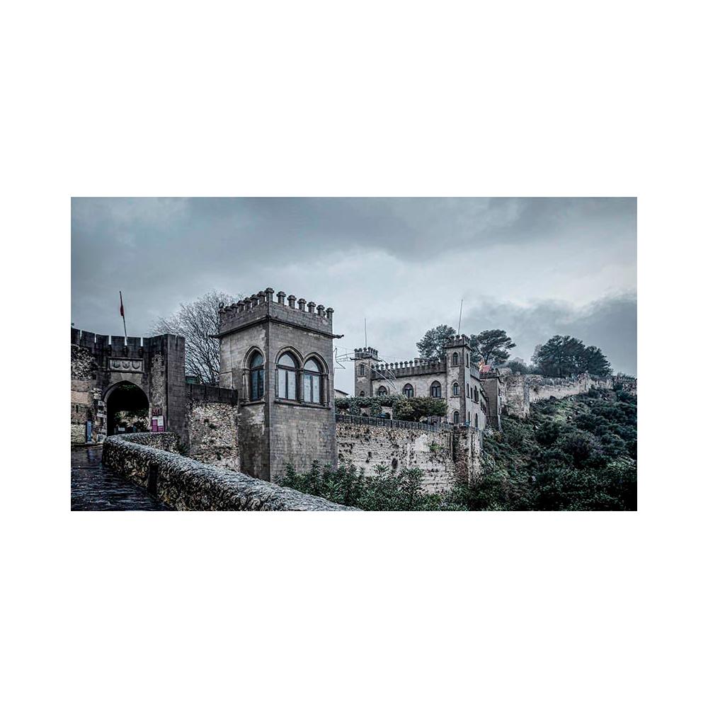 Esta imagen capta con gran detalle la arquitectura defensiva de la puerta principal y el serpenteo de las murallas sobre la montaña. Su atmósfera sobria y su formato de 55 x 100 cm la convierten en una obra central perfecta para salones, despachos o recepciones que busquen transmitir identidad y elegancia histórica.
