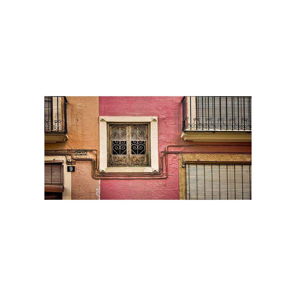 Espectacular fotografía panorámica de un ventanal antiguo (50x100 cm) que destaca por su riqueza de texturas y colores cálidos. Una pieza con alma, lista para enviar. Consulta en nuestro taller de Xàtiva cómo enmarcar cuadros de este formato con marcos a medida que realcen su estilo artesanal.