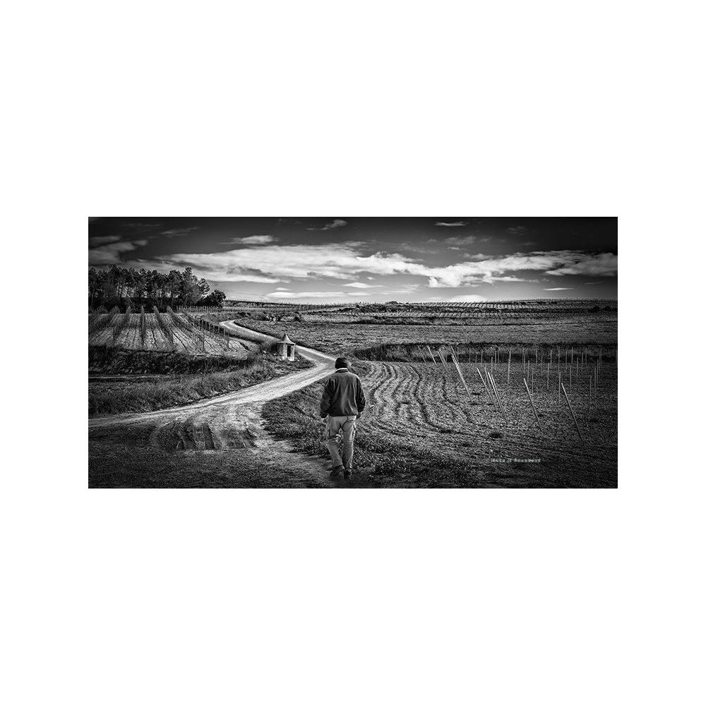 Transforma tu ambiente con la sobriedad y el carácter de esta fotografía de autor. La imagen muestra un paisaje típico de Moixent (Mogente), donde la línea de fuga del camino y la textura de los campos labrados crean una composición de gran impacto visual y emocional.