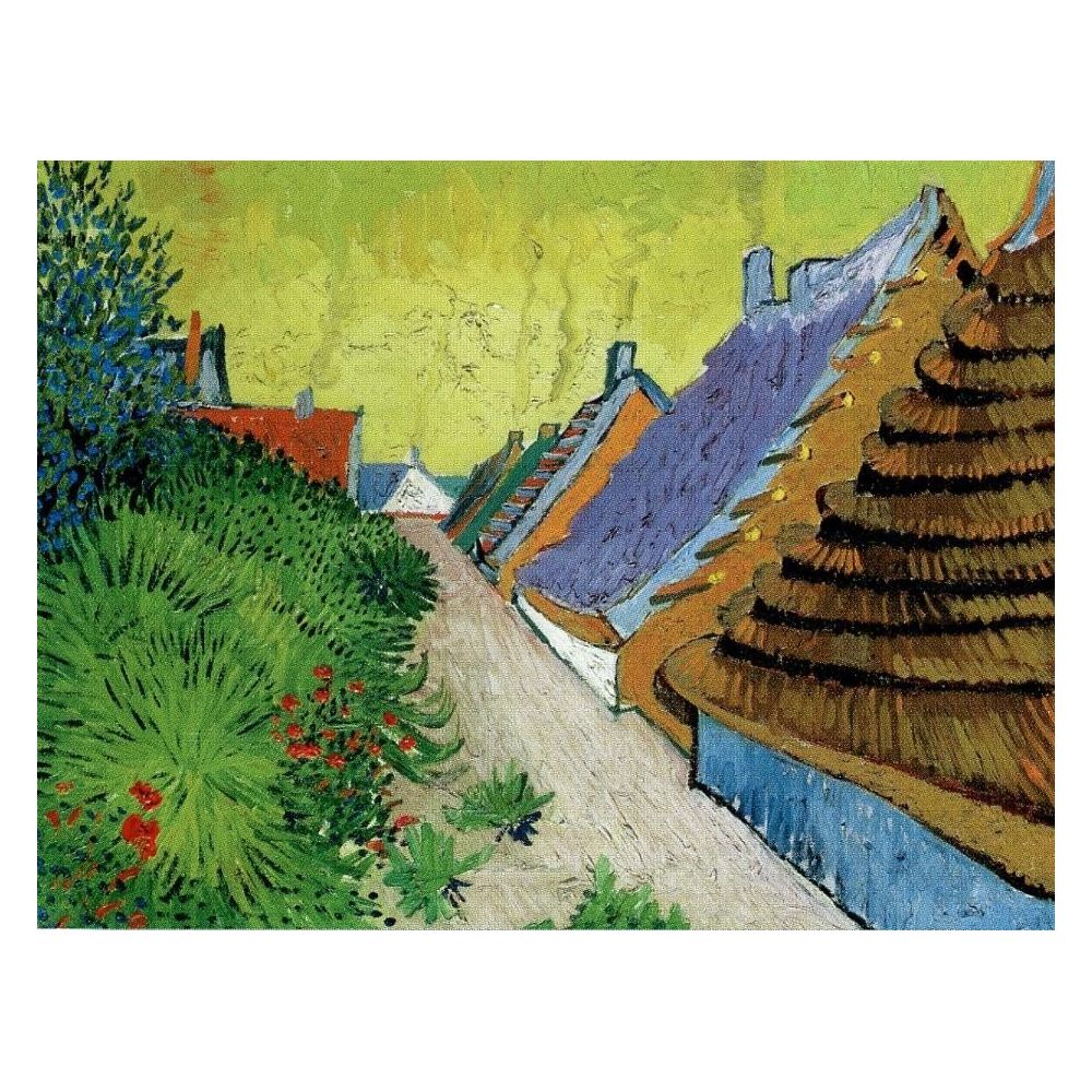 Transforma tu hogar con la fuerza visual de la Lámina Pueblo (Cabañas con techo de paja), una de las obras donde Vincent van Gogh mejor plasmó la belleza de la vida sencilla.