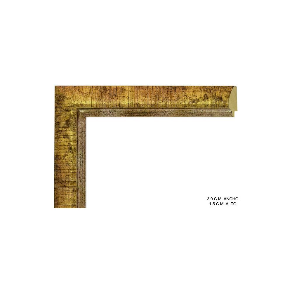 Marco de madera a medida con acabado dorado clásico y efecto envejecido. Una moldura con carácter y elegancia, ideal para obras de arte, óleos o fotografías especiales que busquen un toque distinguido. Con un perfil robusto de 3,9 cm, este marco realza cualquier estancia con su brillo noble.