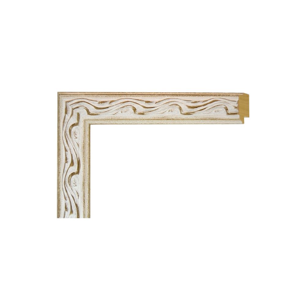 Elegante marco de madera artesanal en color blanco con sutiles relieves dorados y acabado decapado. Con un perfil de 3,5 cm de ancho, es la opción ideal para dar luz y un estilo clásico renovado a tus fotos, láminas o lienzos. Fabricación a medida exacta.